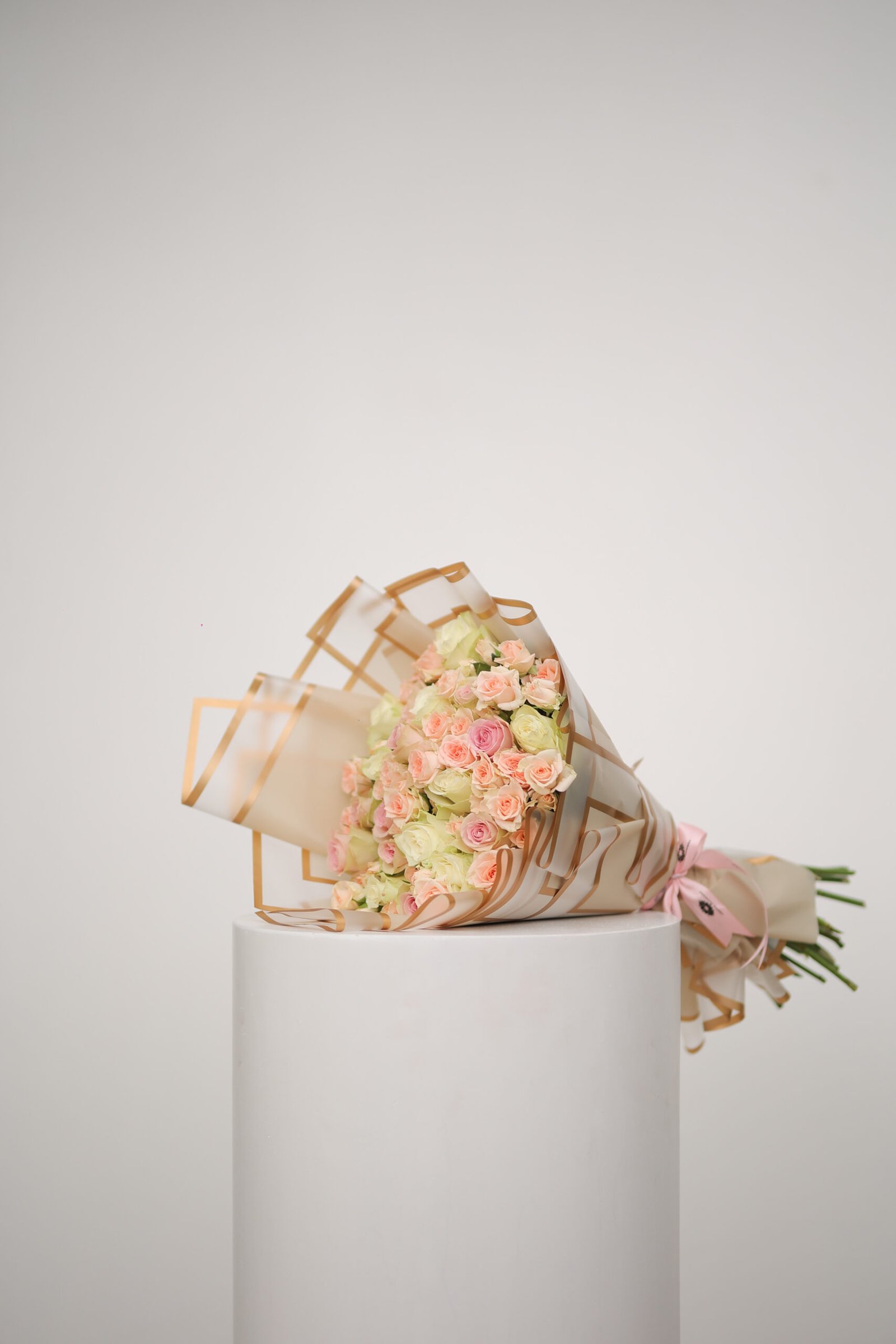 Elegant white and salmon bouquet, blending softness and romance.