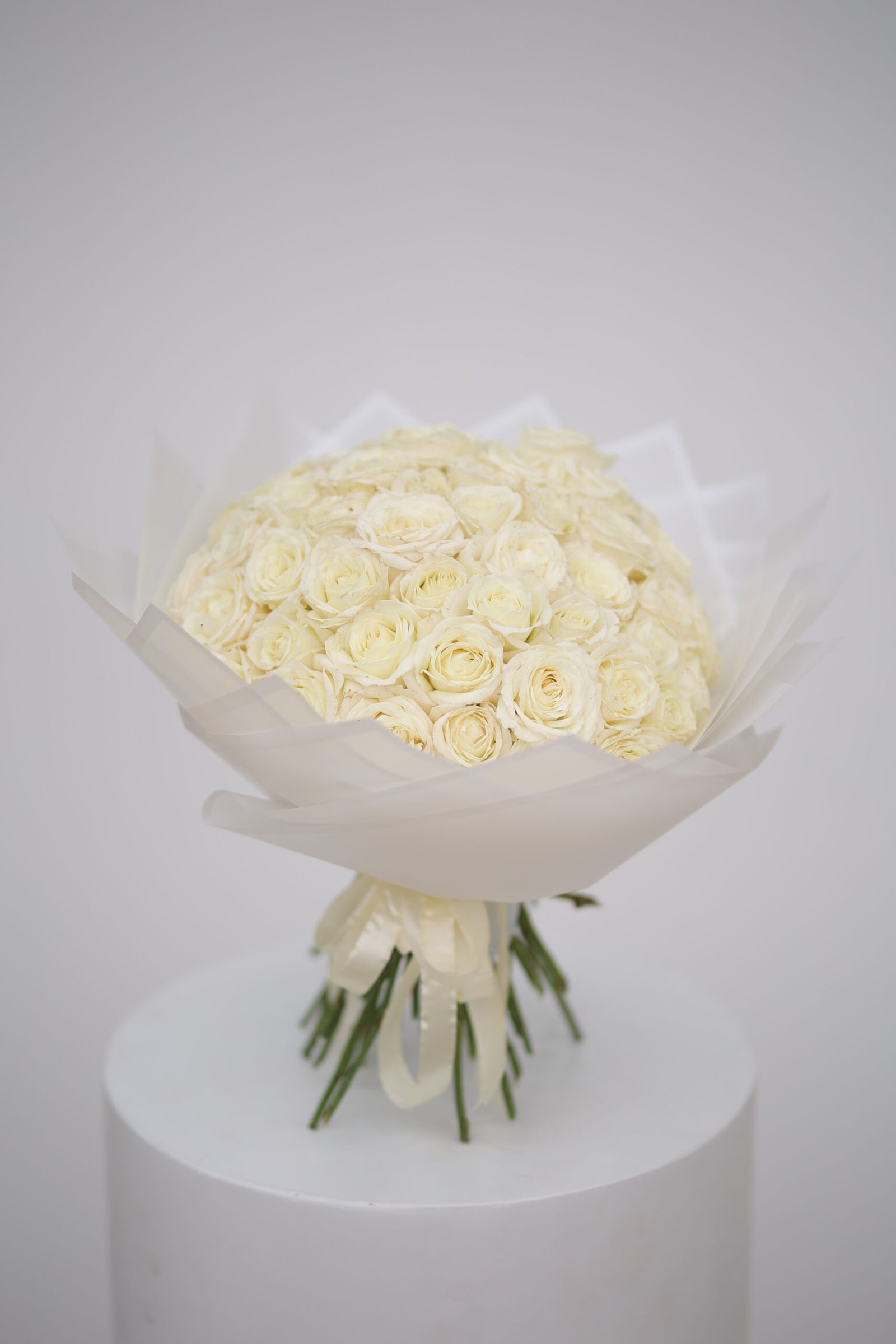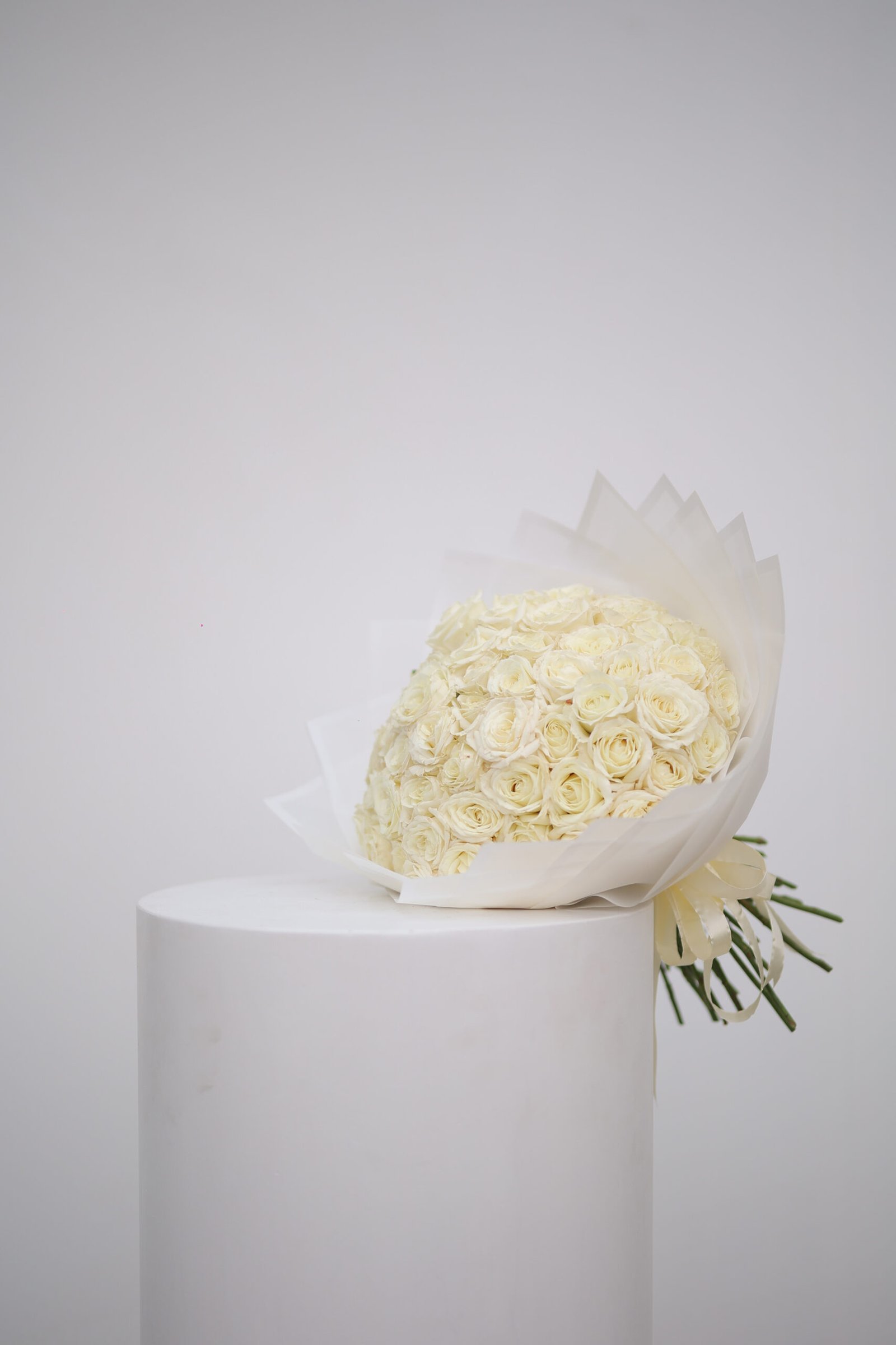 بوكيه فاخر من ورد أبيض، ينير المكان ويعكس الرقة والنقاء في كل لمسة.